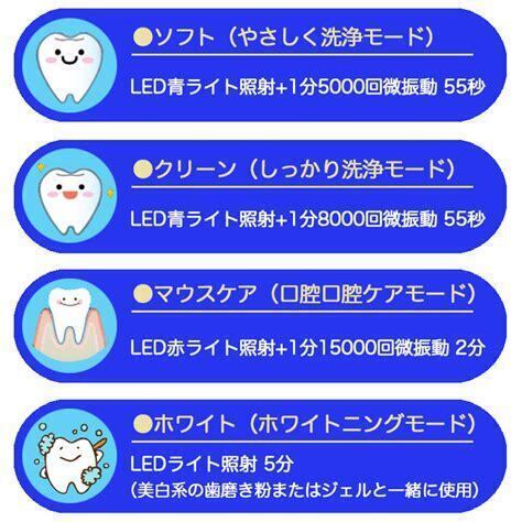 青色LEDライトと、5,000回/分の振動を55秒間行います。